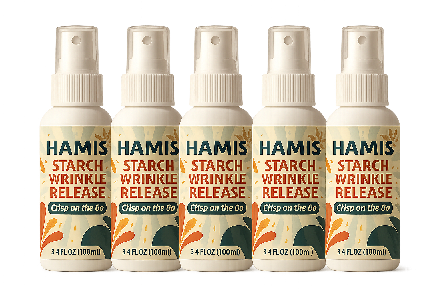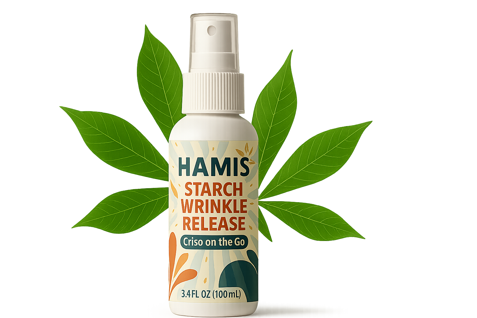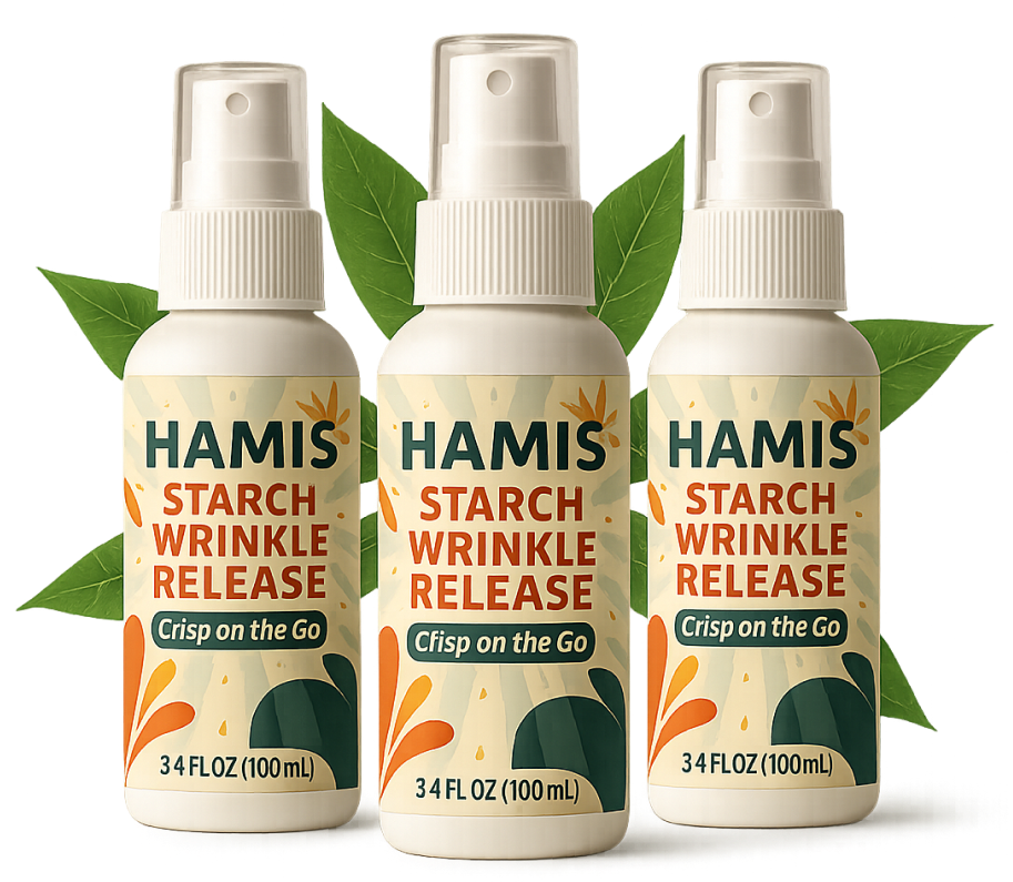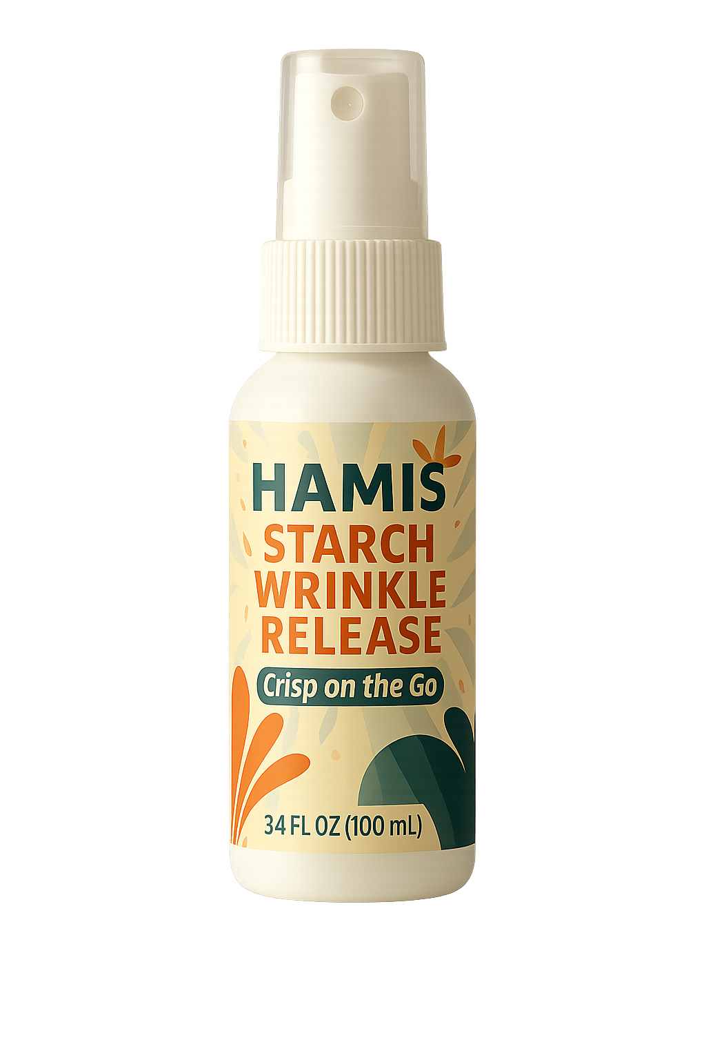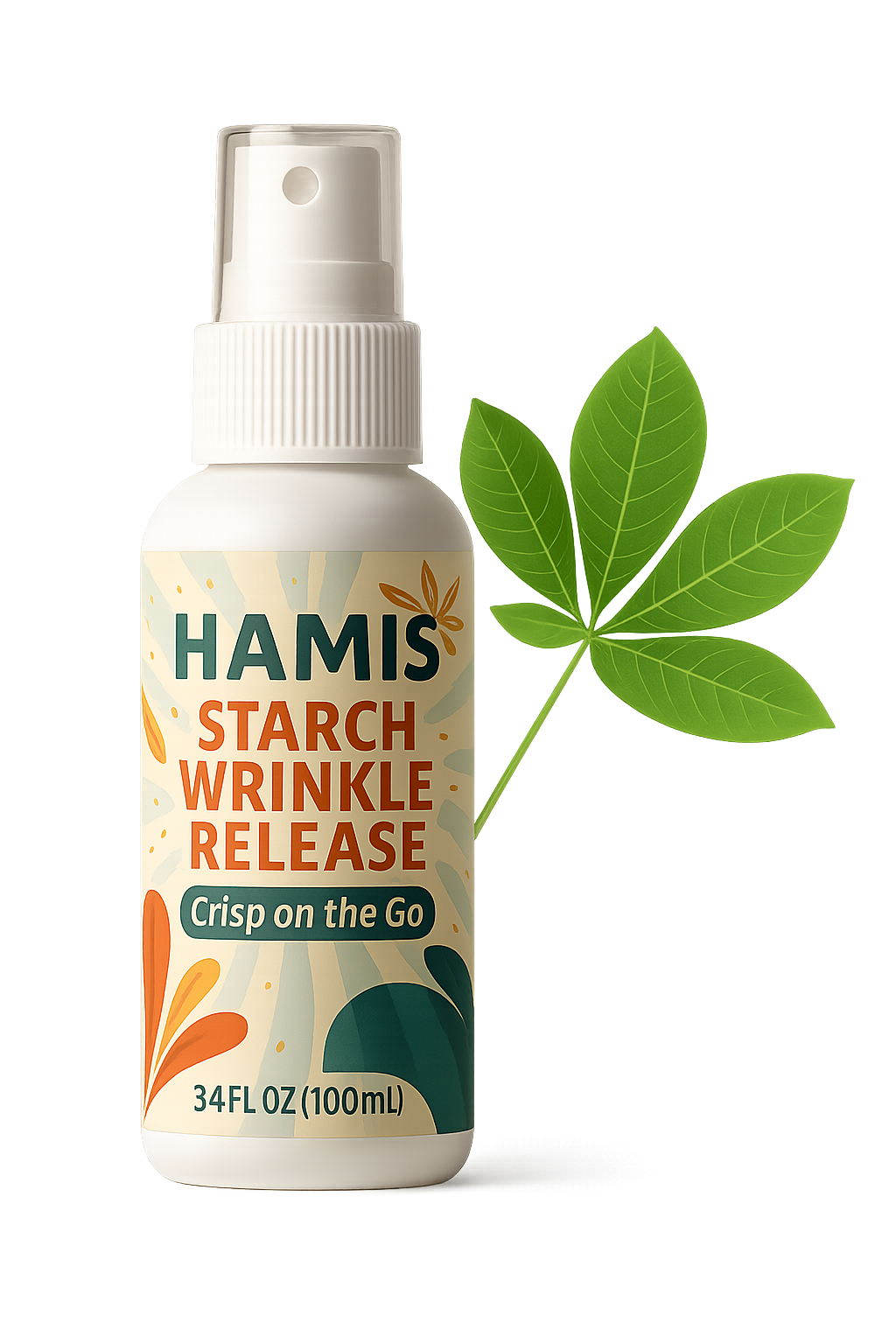 Meet Hamis Wrinkle Release Spray, the natural wrinkle release spray that keeps your clothes fresh, smooth, and ready in seconds, no iron required. Made from cassava starch, Hamis delivers a plant-powered solution that’s gentle on fabrics and tough on wrinkles, giving you that clean, confident look anywhere you go.
